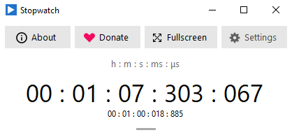 Choose a stopwatch resolution of 1 second, 1 millisecond or 1 microsecond. UI update intervals can be customized separately.
