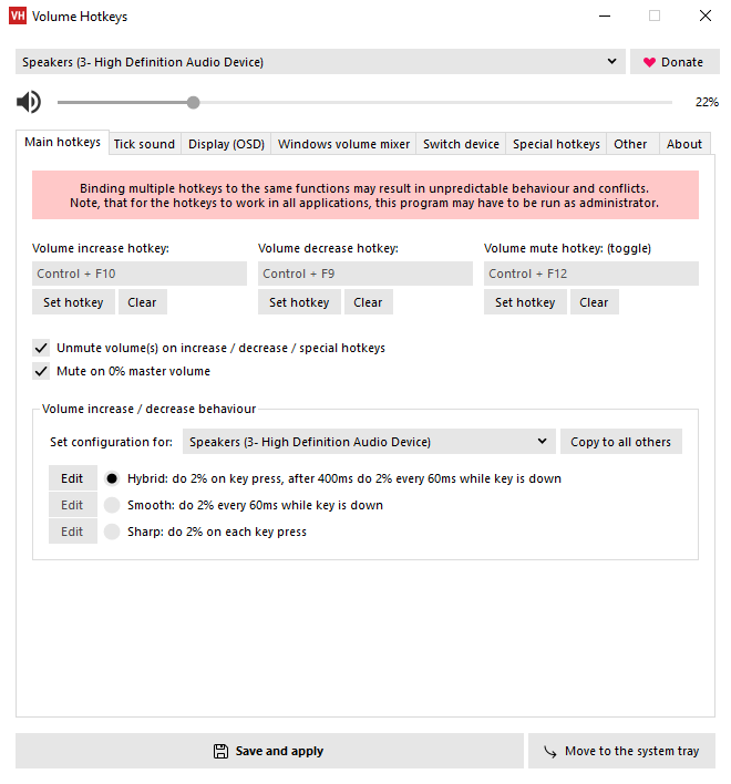 Set different increase / decrease volume behaviour configurations for different sound output devices.
